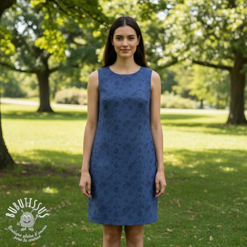 JEANS 9,5 OZ Embossed Flowers dark blue
