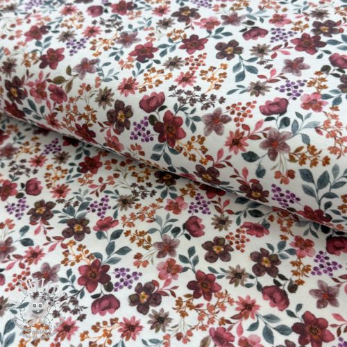 Jersey Flowers burgundy digital print ORGANIC