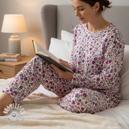 Jersey Flowers fuchsia digital print ORGANIC