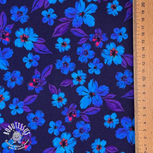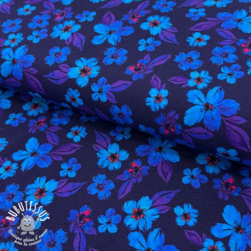 Jersey Hannah flowers blue digital print