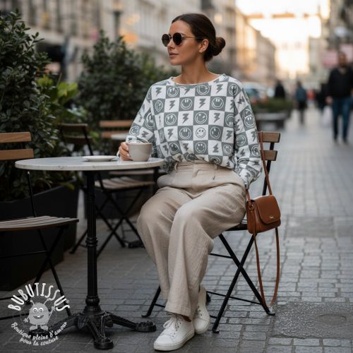 Jersey Happy faces square sage digital print