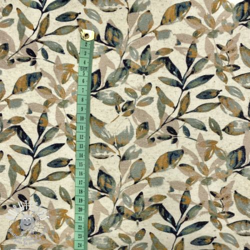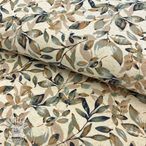Jersey Lin Leaves old green ochre digital print