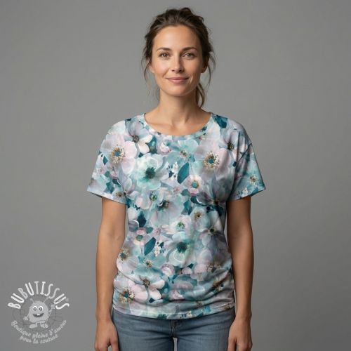 Jersey VISCOSE LYCRA HEAVY Classic flowers design D