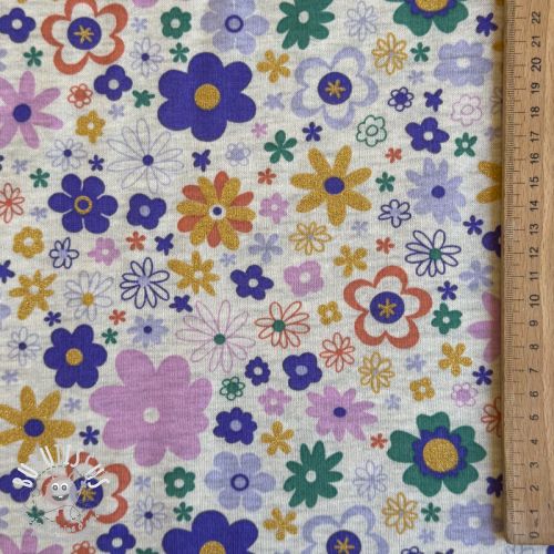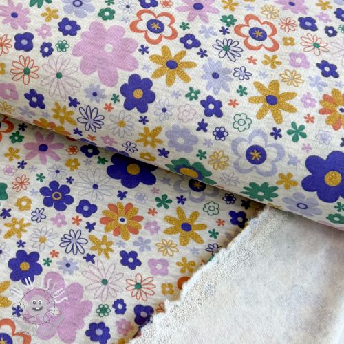 Sweat envers minkee Glitter flowers ecru melange