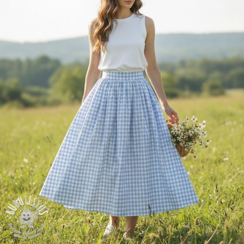 Tissu coton Check sky