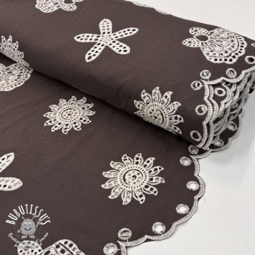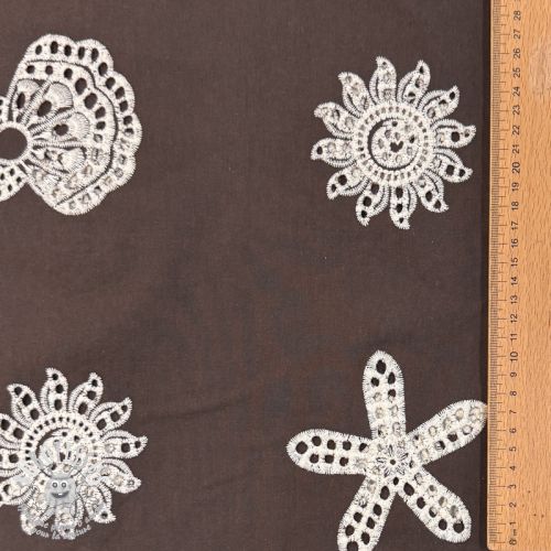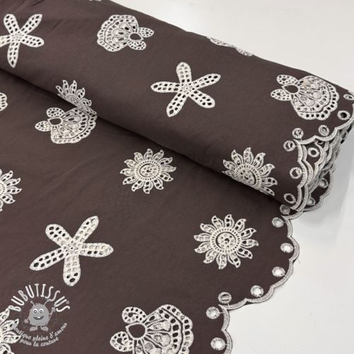 Tissu coton EMBROIDERY Sea ornaments brown