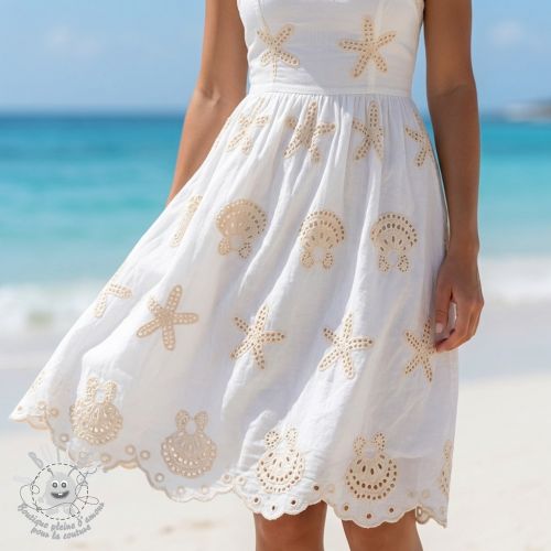 Tissu coton EMBROIDERY Sea ornaments white