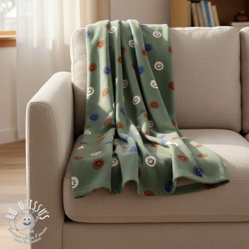 Tissu coton FLANNEL Happy faces army green