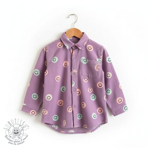 Tissu coton FLANNEL Happy faces lavender