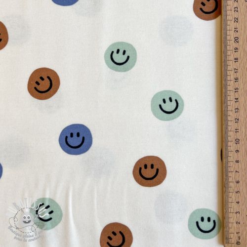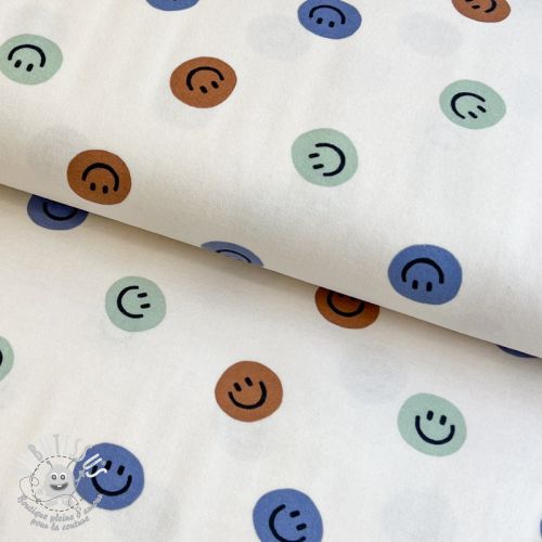 Tissu coton FLANNEL Happy faces off white green