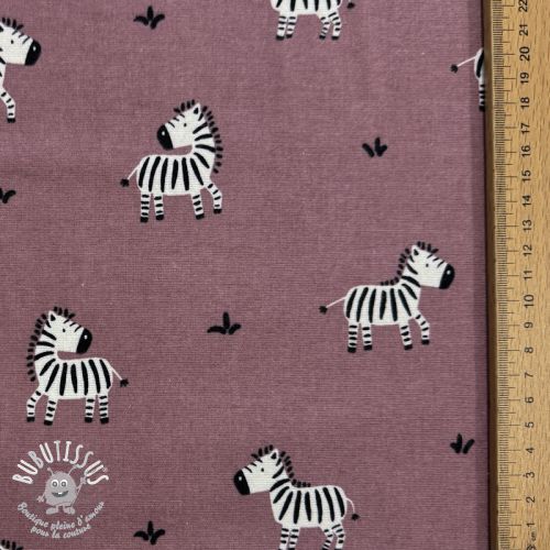 Tissu coton FLANNEL Zebras mauve