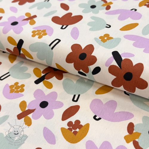 Tissu coton Flowers natural/lavender by JENNIFER BOURON ORGANIC