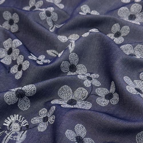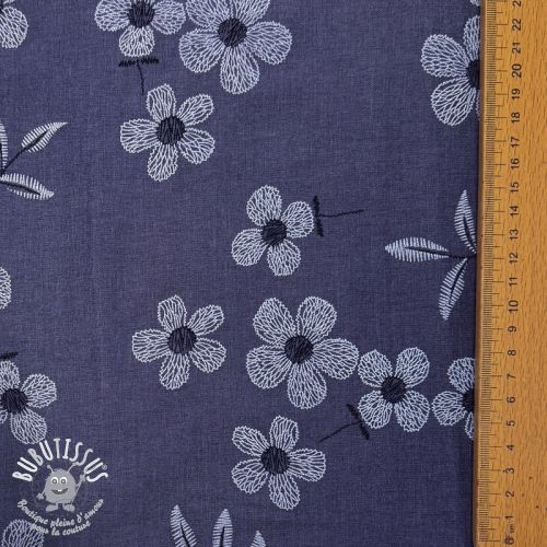 Tissu coton JEANS Chambre LUXURY JACQUARD Flowers dark blue