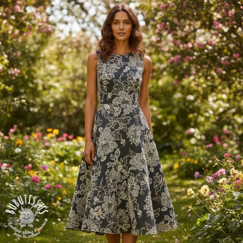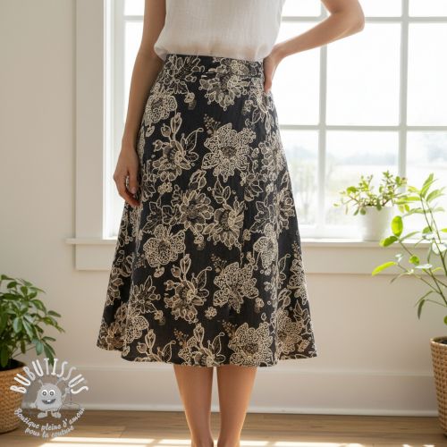Tissu coton JEANS EMBROIDERY Bouquet black