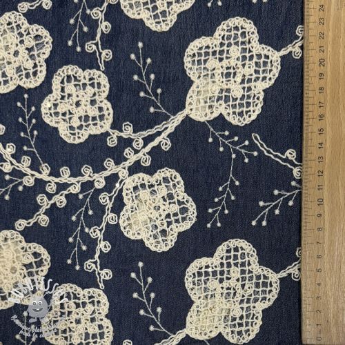 Tissu coton JEANS EMBROIDERY Flora design A