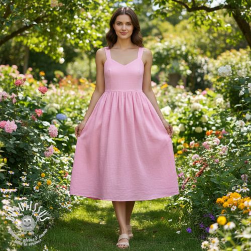 Tissu coton Lin PREMIUM dawn pink