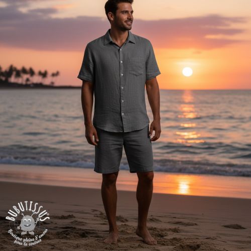 Tissu coton Lin PREMIUM dark grey