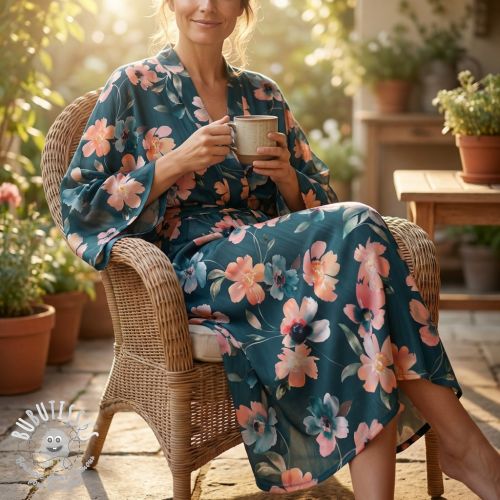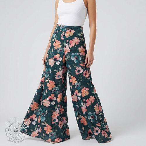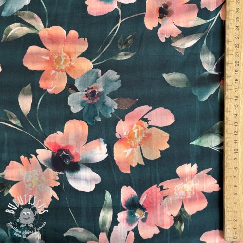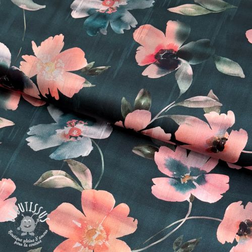 Tissu coton SATIN Penny flower petrol digital print