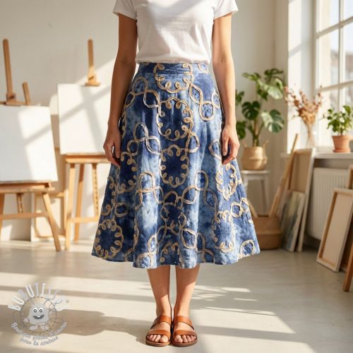 Tissu coton TIE DYE EMBROIDERY Elise tape design B