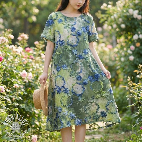 Tissu coton TIE DYE EMBROIDERY Eva tape design A