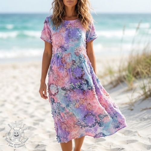 Tissu coton TIE DYE EMBROIDERY Eva tape design A