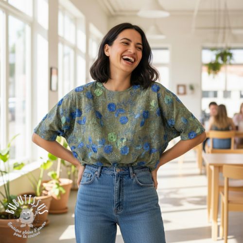 Tissu coton TIE DYE EMBROIDERY Poppy design M