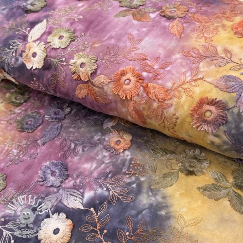 Tissu coton TIE DYE EMBROIDERY Poppy design E