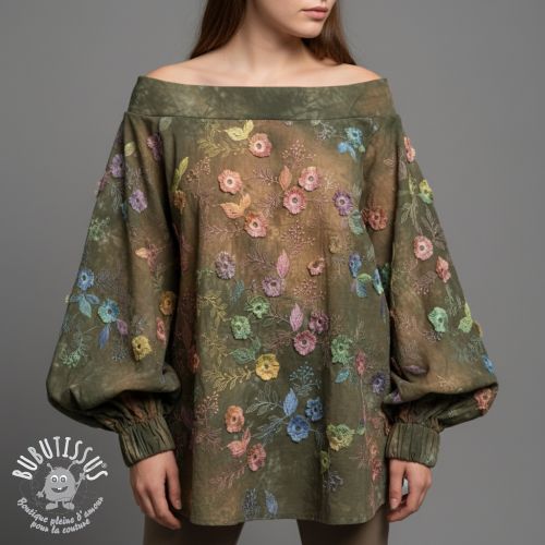 Tissu coton TIE DYE EMBROIDERY Poppy design I