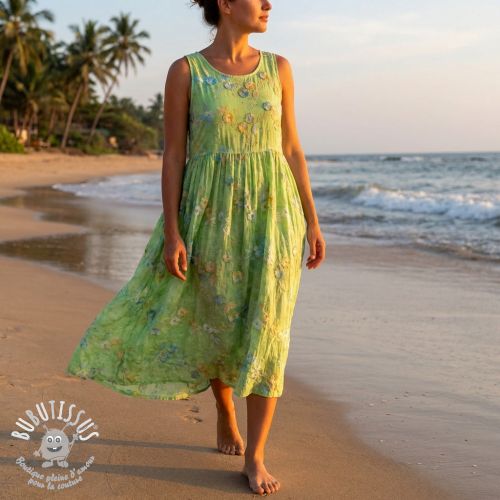 Tissu coton TIE DYE EMBROIDERY Poppy design M