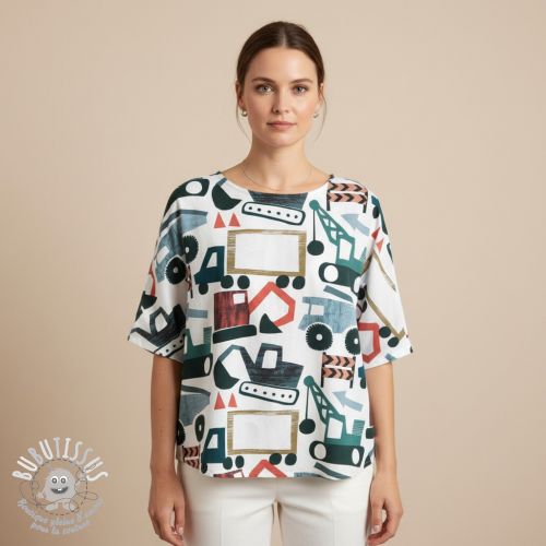Tissu coton Vehicles off white digital print