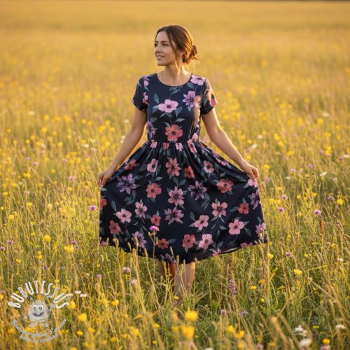 Tissu coton VISCOSE Flowers navy digital print