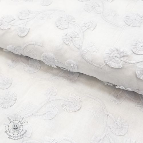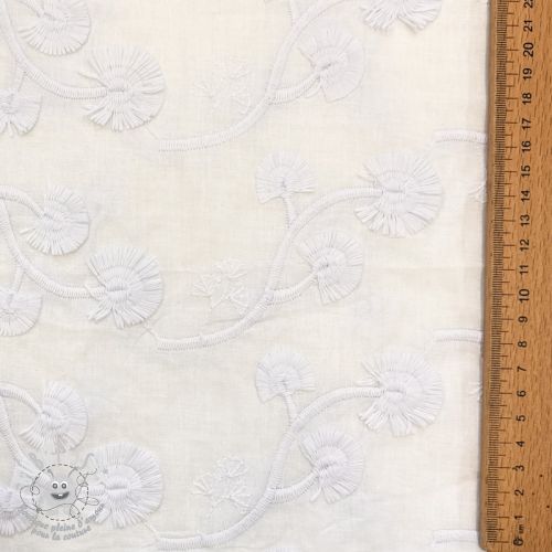 Tissu coton VOILE EMBROIDERY Flowers with stem white