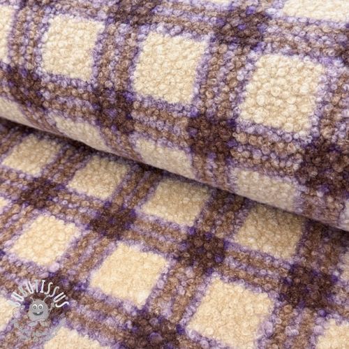 Tissu de manteau BOUCLÉ checks grape
