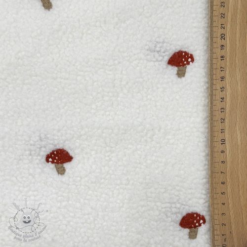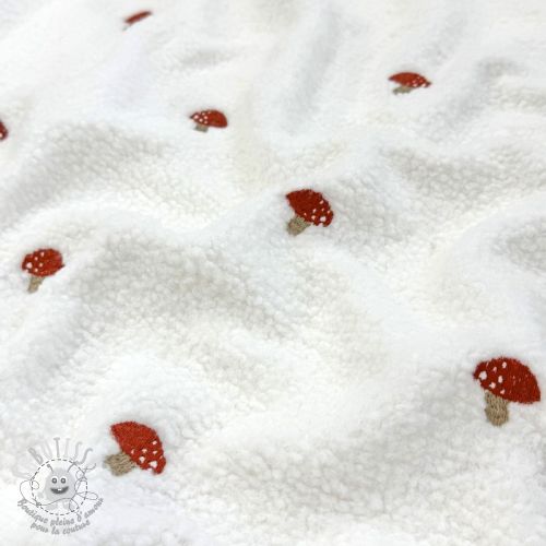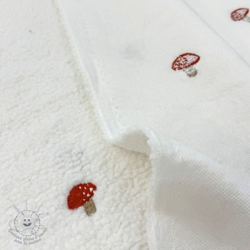 Tissu de manteau EMBROIDERY Little mushrooms off white