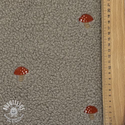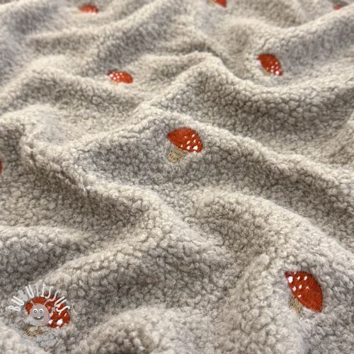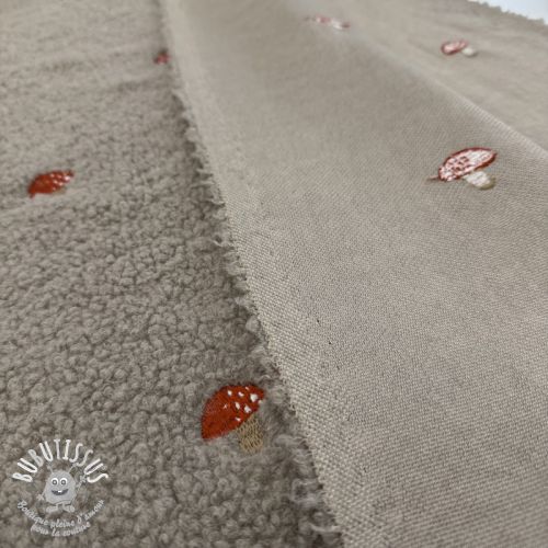 Tissu de manteau EMBROIDERY Little mushrooms pebble