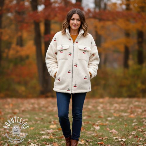 Tissu de manteau TEDDY EMBROIDERY Cherries