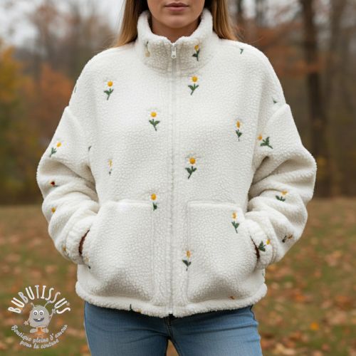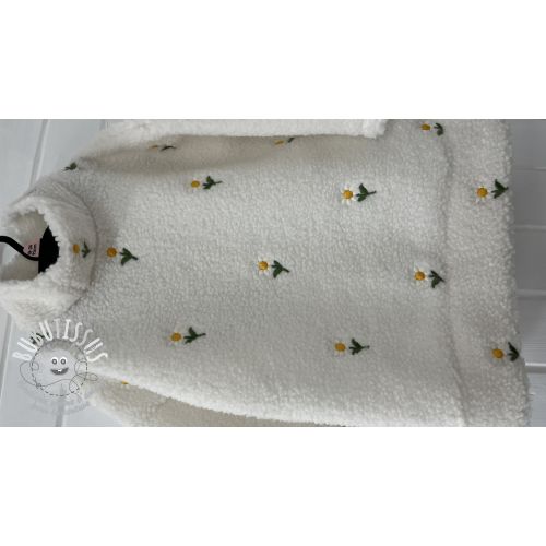 Tissu de manteau TEDDY EMBROIDERY Flowers off white