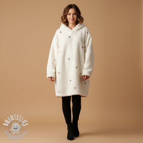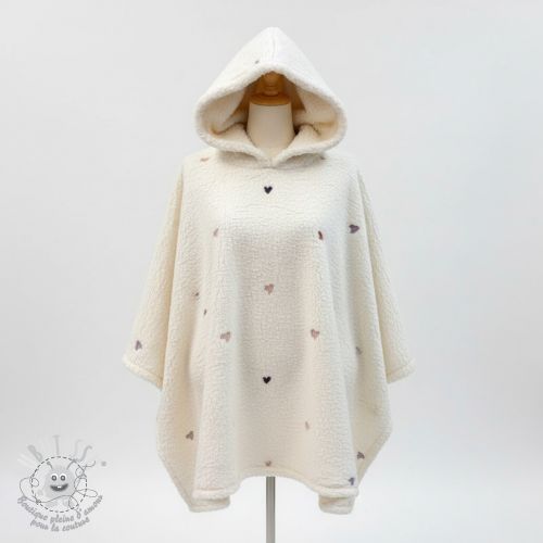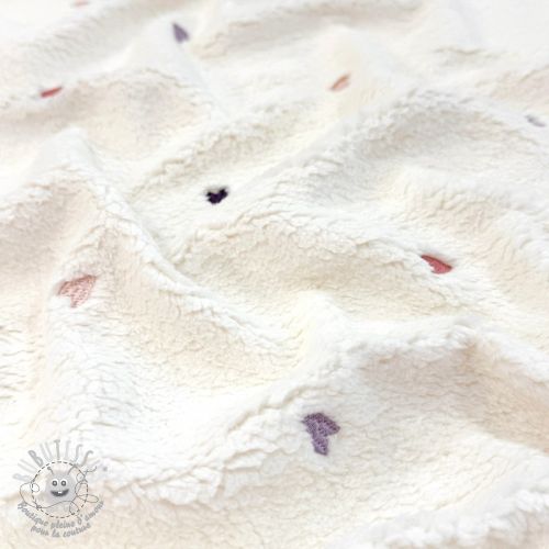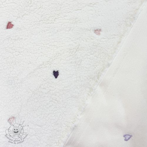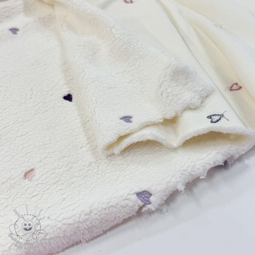 Tissu de manteau TEDDY EMBROIDERY Hearts ecru