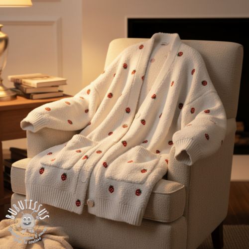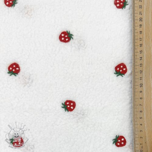 Tissu de manteau TEDDY EMBROIDERY Strawberries off white
