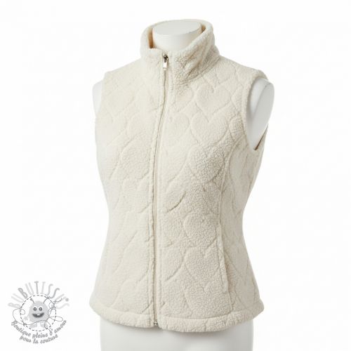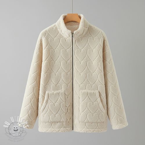 Tissu de manteau TEDDY Hearts in hearts ecru