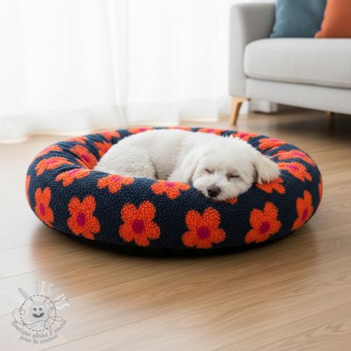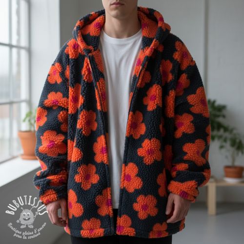 Tissu de manteau TEDDY JACQUARD Flowers navy