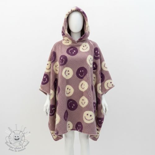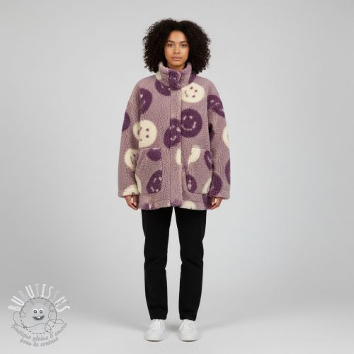 Tissu de manteau TEDDY JACQUARD Happy faces mauve