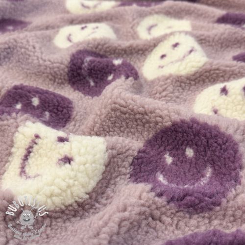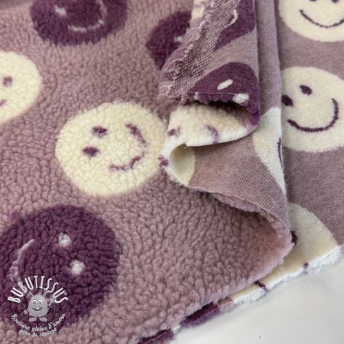 Tissu de manteau TEDDY JACQUARD Happy faces mauve