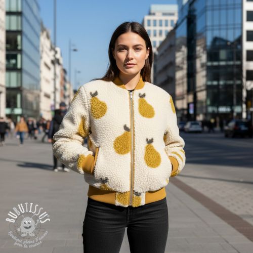 Tissu de manteau TEDDY JACQUARD Pears old lime