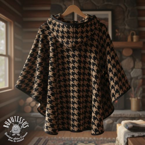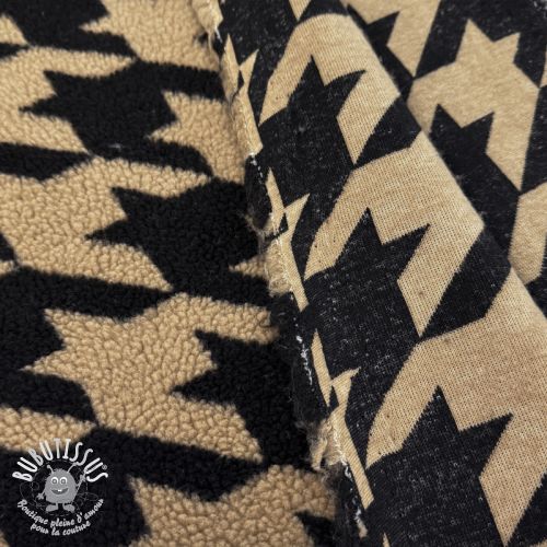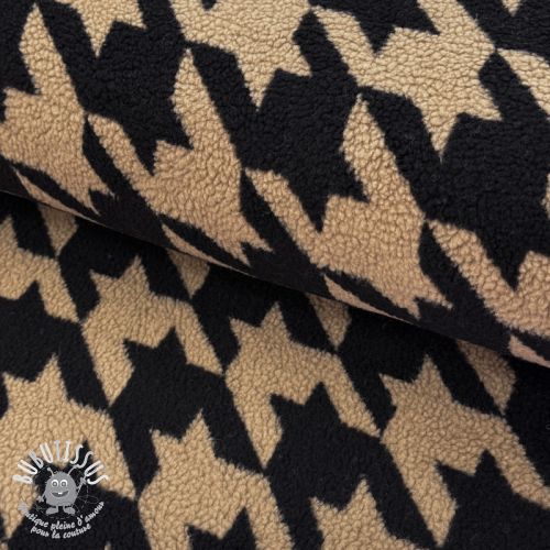 Tissu de manteau TEDDY JACQUARD PIED DE POULE camel