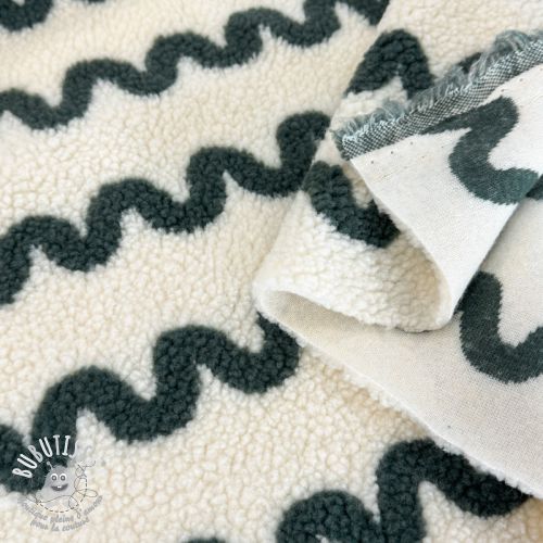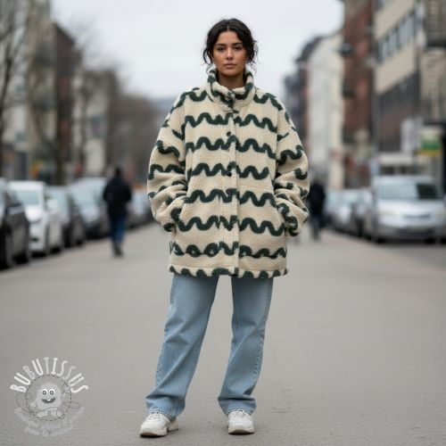 Tissu de manteau TEDDY JACQUARD Waves army green