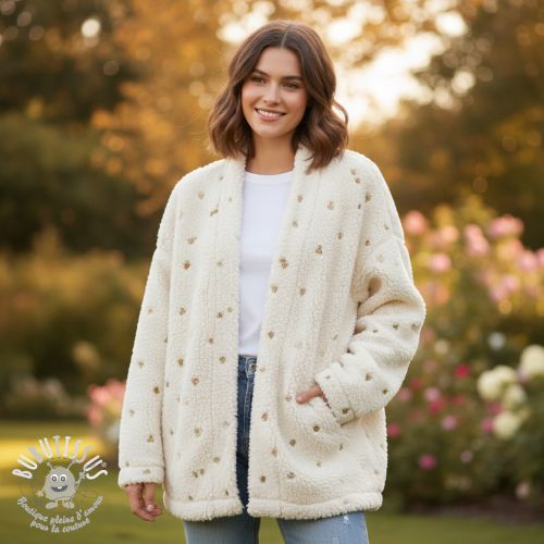 Tissu de manteau TEDDY Tossed hearts gold