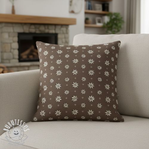 Tissu déco jacquard DOUBLE FACE Landhaus Edelweiss taupe