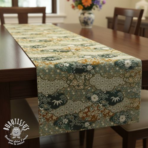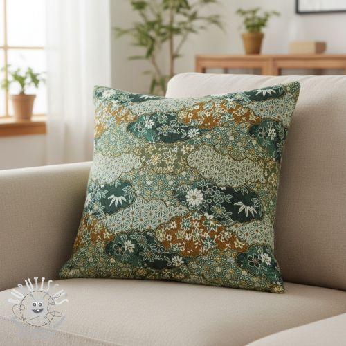 Tissu déco jacquard Nuage allover kaki
