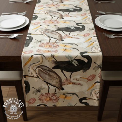 Tissu déco VELVET Heron bird camel